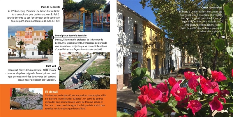 La trama urbana del municipi està dividida en dotze seccions i en cadascuna d’elles es troba un plànol on s’indiquen indrets destacats: edificis, escultures, conjunts vegetals... per tal que cada persona puga descobrir la zona al seu aire i decidir el seu propi recorregut. A la part final trobem una xicoteta relació de les dates i els esdeveniments culturals i socials del nostre poble.