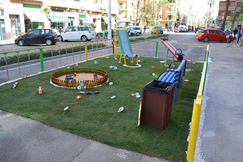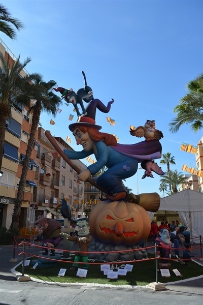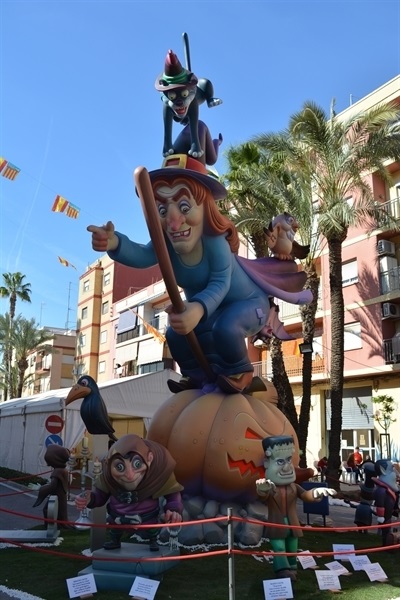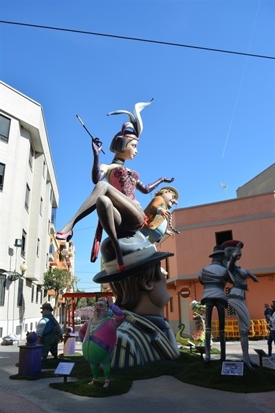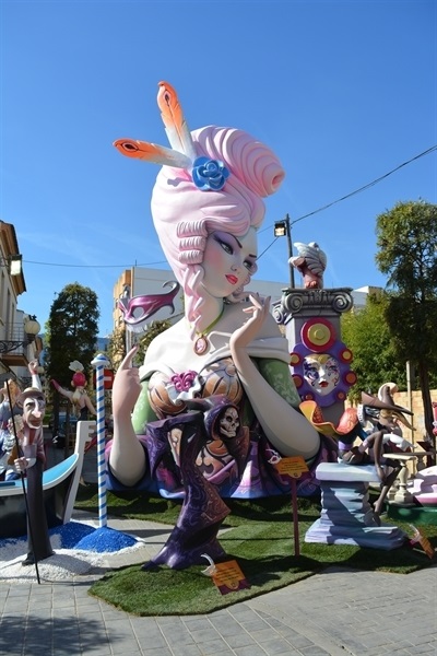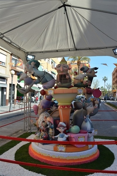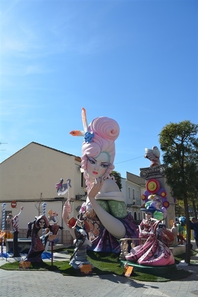 Imatges dels monuments fallers plantats per les comissions Barri Barri del Carme, Falla Pl. País Valencià, Falla Sta. M. del Puig i Falla Vistabella.