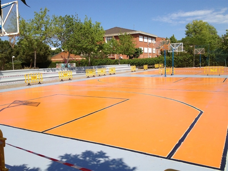 Estes pistes són utilitzades cada dia per decenes de joves esportistes això fa que, dia a dia, el sòl vaja desgastant-se i perdent adherència cosa que dificulta les evolucions tant de jugadors de bàsquet com de rollers o skaters. Amb la intervenció actual s'han cobert les superfícies esportives primer amb una imprimació específica i després amb una pintura anti-relliscant cosa que millora clarament les condicions d'ús.