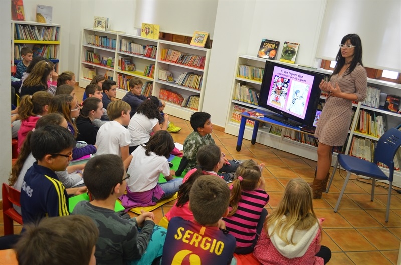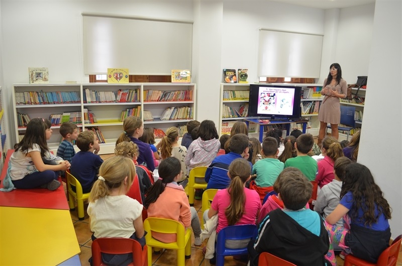 A les 9.30h ha acudit a la biblioteca l'alumnat de 4rt de primària de l'escola Ausiàs March i a les 11.30h han estat els menuts i menudes de l'escola Baladre els que han pogut disfrutar amb les explicacions i les històries de Mercè Climent.