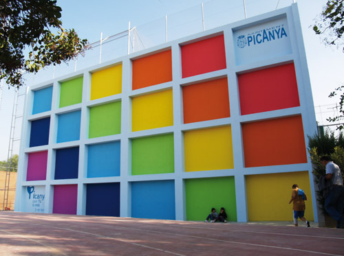 Es va procedir a la demolició i reconstrucció dels dos frotons del Polieportiu Municipal per tal d'aconseguir millorar les condicions d'aquestes pistes. També es va optar per una decoració final d'acord amb l'estètica d'altres intervencions, que permetera dotar al conjunt d'un aspecte atractiu i emblemàtic.